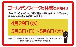 ゴールデンウィーク期間の休業につきまして